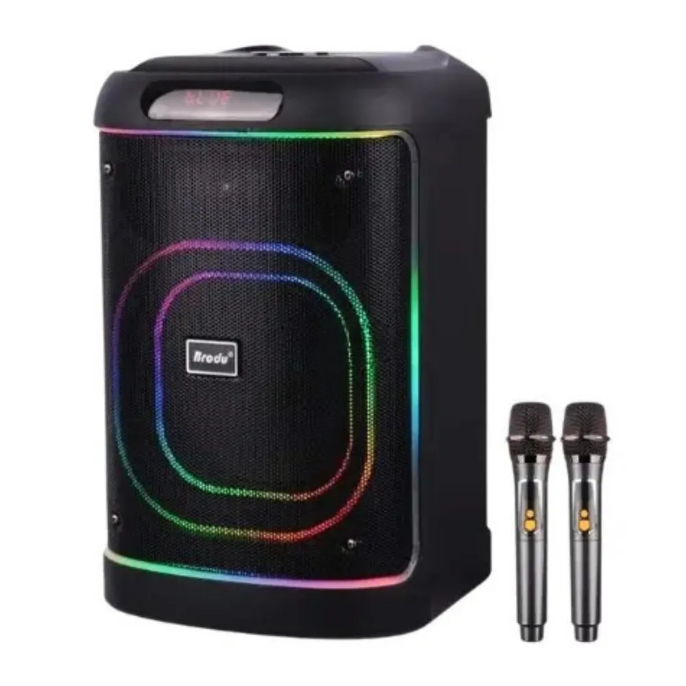 Brodu BTS 2105 Wireless Speaker – 8″ Bluetooth Karaoke Speaker with Dual Wireless Mics & RGB Lights