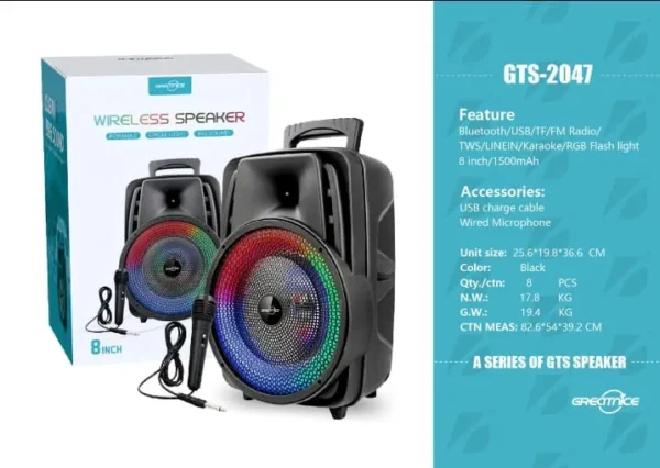 GTS-2047 Speaker With 8 Inch Pofer With Mic And Charging Cable 1200mah battery