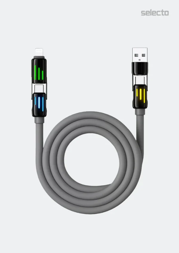 The Infinix Cable XDX15 4-in-1 combines versatility with durability, delivering simultaneous charging and data transfer across multiple devices. This multi-connector cable features Lightning, USB-C, Micro-USB, and standard USB compatibility, eliminating the need for separate cables in your tech arsenal. Built with premium materials and reinforced connectors, it withstands daily wear while maintaining reliable performance. Ideal for households with diverse device ecosystems, the XDX15 streamlines your charging setup without compromising on quality or functionality.