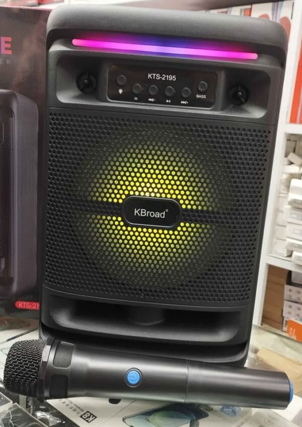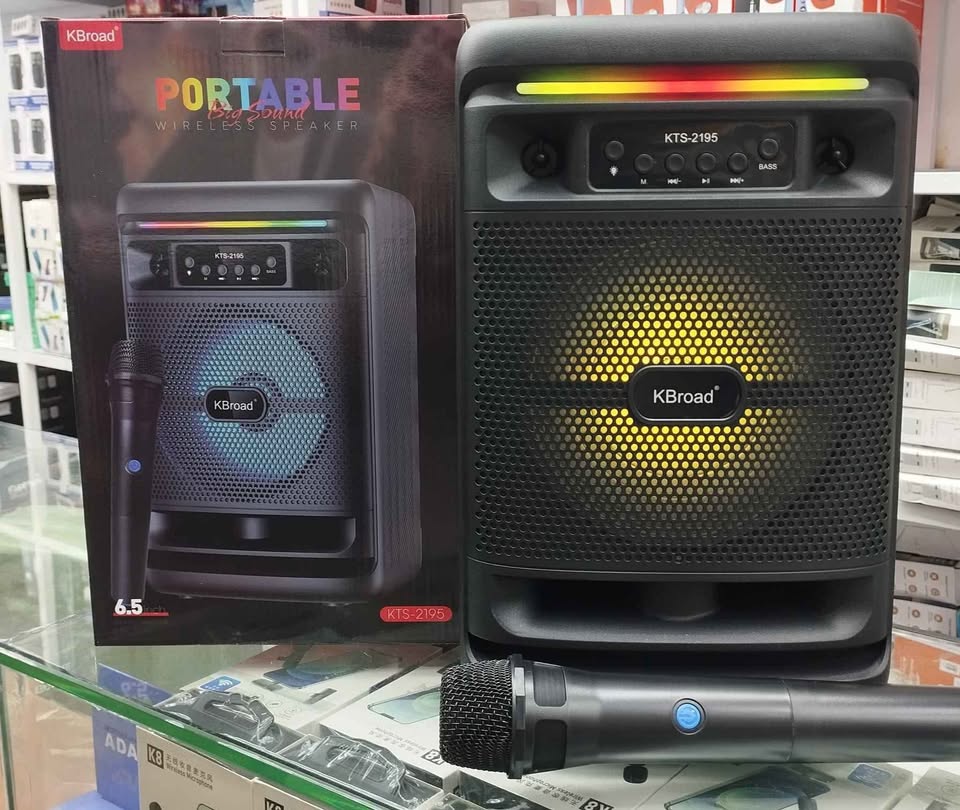 The KTS-2195 Portable Bluetooth Speaker with Wireless Mic (6.5” Inch) is a high-performance audio system designed for karaoke, parties, and events. Featuring a 6.5-inch speaker, this portable Bluetooth wireless speaker delivers loud, clear sound with deep bass for an immersive audio experience.