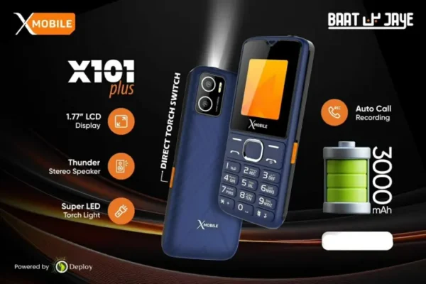XMOBILE X101 PlusBeautiful mobile for beautiful people’shigh qualitydual simMemory Card Supported1.77 inch LCD DisplaySuper LED torch Lightsmart camera3000mAH Big BatteryAuto call recordingWireless FM radioThunder Stereo speakersAudio & Video Player1 year brand warranty