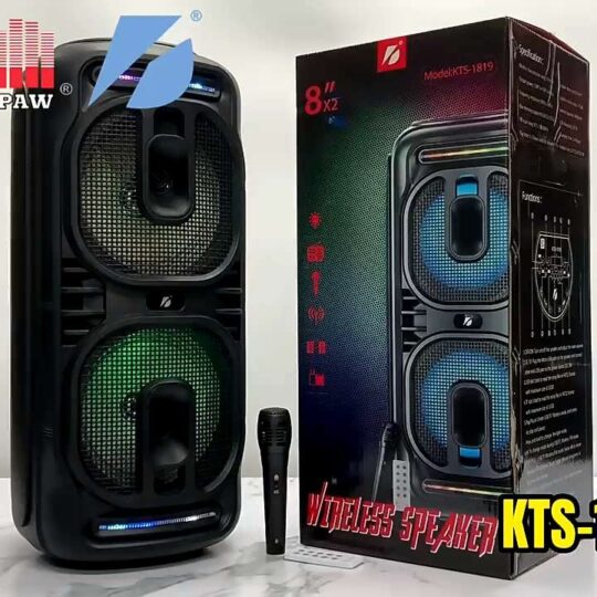 Kts-1819 Bt Wireless Portable Outdoor Speaker Dual 8 Inch With Wired Microphone Fm Radio Usb Aux Tf Card Tws Mp3 Music Player