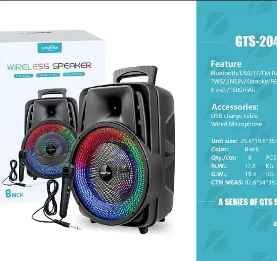 GTS-2047 Speaker With 8 Inch Pofer With Mic And Charging Cable 1200mah battery